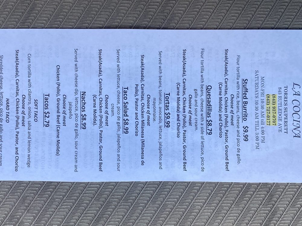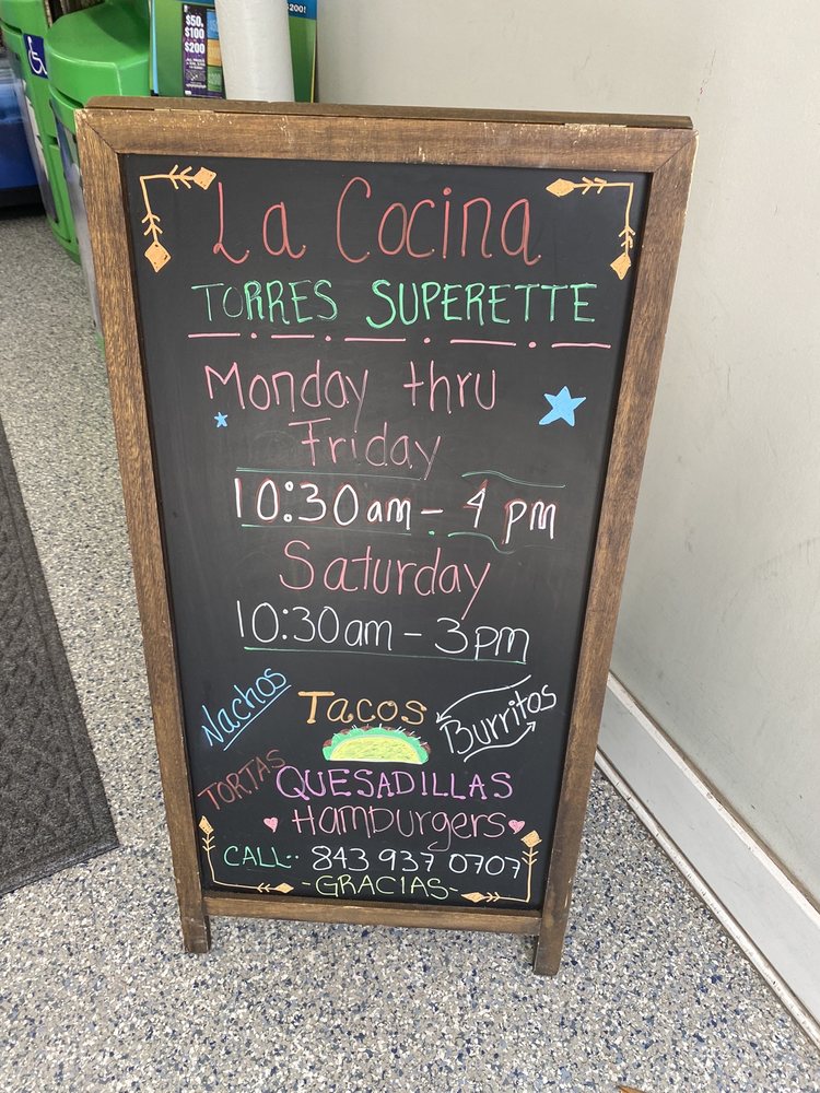 Torres Superettes in Charleston, SC offers a unique combination of convenience store items and delicious Mexican food. Customers rave about the flavorful tacos, burritos, and quesadillas. The menu includes options like carne asada tacos, chicken burritos, and steak quesadillas, all with well-seasoned and tender meats. The tacos are highlighted as exceptional, served with fresh lime and a tasty green salsa for an added kick. The friendly atmosphere and quick service make Torres Superettes a hidden gem in the NoMo area. With a variety of drinks, snacks, and household items available, it's a one-stop shop for both a quick meal and shopping needs. Don't miss out on the opportunity to try the mouthwatering dishes at Torres Superettes - a must-visit place for anyone craving authentic Mexican flavors.